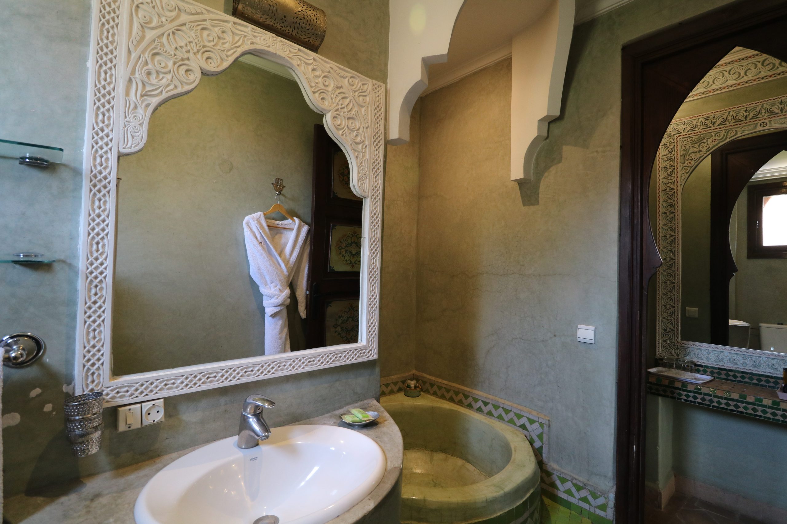 Située au 1er étage du Riad, elle est très lumineuse avec sa fenêtre et son balcon sur jardin, tout en étant calme, une salle de bain spacieuse, un minibar, une terrasse, TV satellite, coffre-fort, une literie de qualité avec un lit en 180 cm et d'une dominante de couleur de lis, elle vous incite au "bien-être".